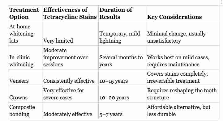To better understand the available options, it helps to compare what each treatment offers in terms of effectiveness on tetracycline stains.
